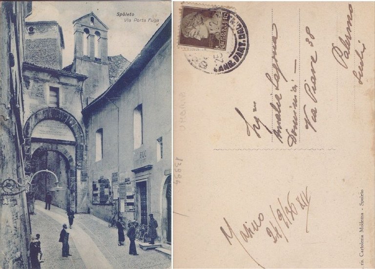 Cartolina - Spoleto. Via Porta Fuga. Viaggiata 1936, animata