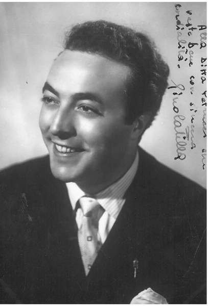 Cartolina illustrata con foto di Latilla, dedica autografa e firma dal cantante
