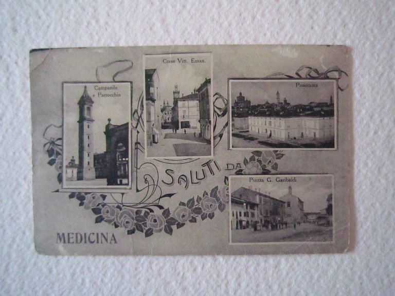 Vedere la descrizione dettagliataCartolina Medicina Bologna 4 vedute - Campanile e Parrocchia - Corso Vitt. Eman. - Panorama - Piazza G. Garibaldi Ufficio rev. stampa - Milano, 1918, Dimensione: 8,8x13,5cm. Condizioni di conservazione Cartolina in buono stato di conservazione con minime tracce del tempo, angoli un po' arrotondati, angolo superiore sinistro e inferiore destro con piccola piega, leggere abrasioni, viaggiata con francobollo asportato al retro. CART.0480 blu Per altri volumi e documenti su questo e altri argomenti visitate il nostro negozio Libreria Grandangolo" Data l'importanza delle 5 stelle rilasciate durante l'assegnazione del feedback, invitiamo tutti gli acqirenti, se soddisfatti del loro acquisto, a rilasciare tutte le 5 stelle. La mancanza anche solo di una stella illuminata è molto lesiva per noi venditori professionali. Grazie! CONDIZIONI DI VENDITA Spedizione Fino a 5 kg piego di libri raccomandato, oltre i 5 kg pacco postale. Si ricorda che l'imballo viene eseguito con la massima cura. La merce viene spedita a pagamento avvenuto e viaggia a rischio e pericolo dell'acquirente. Per maggiori informazioni vedi la pagina SPEDIZIONI del nostro negozio. Ritiro diretto Siamo disponibili per il ritiro diretto a Modena e a Milano. Per gli indirizzi delle sedi vedi la pagina DOVE SIAMO del nostro negozio. Acquisti multipli Se si acquistano più libri, la spedizione si paga una sola volta, purché si rispettino gli scaglioni di peso. Estero / Foreign For international shipment, please contact us. Metodo di pagamento Pay Pal, bonifico bancario, versamento postale (cc/p, vaglia o altro). La spedizione avverrà entro i primi 4 giorni lavorativi dopo la conferma di avvenuto pagamento. Si emette ricevuta fiscale e a richiesta fattura. Il pagamento deve essere effettuato entro 7 giorni lavorativi dalla data di acquisto, trascorsi i quali l'oggetto sarà rimesso in vendita. Feedback Viene rilasciato dall'acquirente dopo il ricevimento di quanto acquistato. Data la sua importanza, vi invitiamo a leggere il breve testo della pagina FEEDBACK del nostro negozio. Pertanto, in caso di qualsiasi problema, non esitate a contattarci. Diritto di recesso L'acquirente ha il diritto di restituire l'oggetto entro 14 giorni ed essere rimborsato, escluse le spese di porto e imballo. L'oggetto deve essere restituito, dopo previa comunicazione, imballato e nelle medesime condizioni di come era all'origine. Creato da Turbo Lister Strumento gratuito per mettere in vendita i tuoi oggetti. Metti in vendita i tuoi oggetti in modo facile e veloce e gestisci le inserzioni in corso. "
