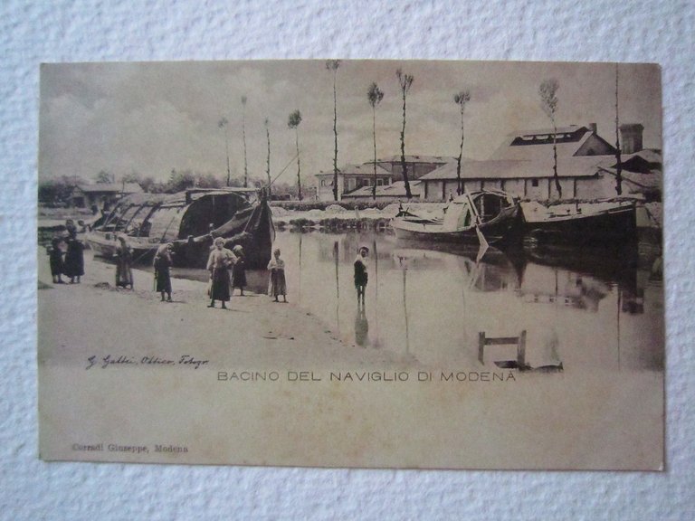 Cartolina Locale Primo '900 Emilia Romagna Modena Bacino del Naviglio Animata