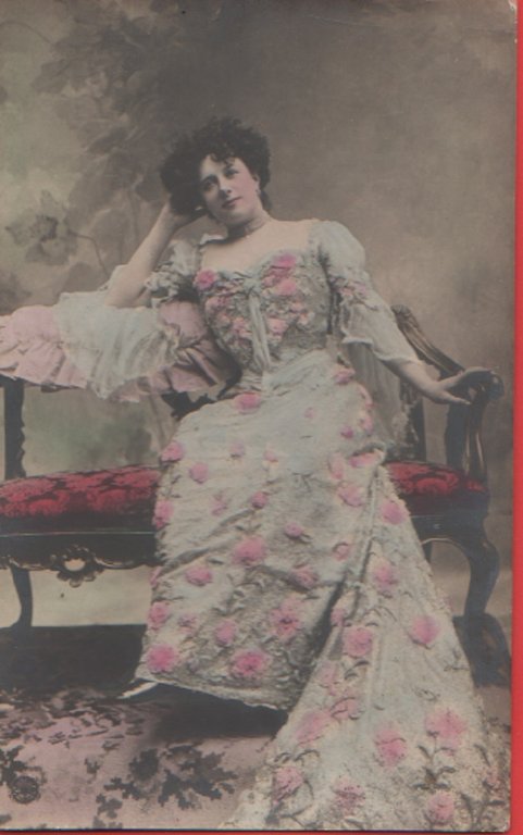 Cartolina. Ragazza con vestito a fiori - No viaggiata, originale