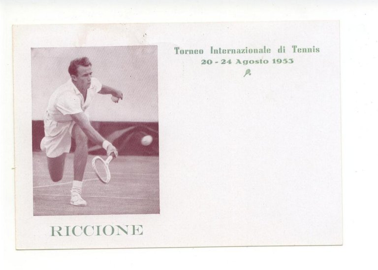 Cartolina pubblicitaria originale, Riccione Torneo Internazionale di Tennis 20 - 24 Agosto 1953 1953 cartolina originale ill. a col. Cm 15x10,5 (formato grande). Non viaggiata. Condizioni di conservazione Cartolina molto ben conservata (vedi foto). Affrancata con annullo filatelico. CART.2497G