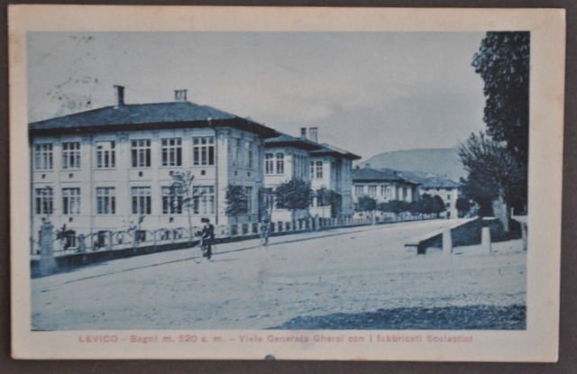 Cartolina Trentino Levico Bagni Fabbricati Scolastici Scuole Bici Ghersi 1923