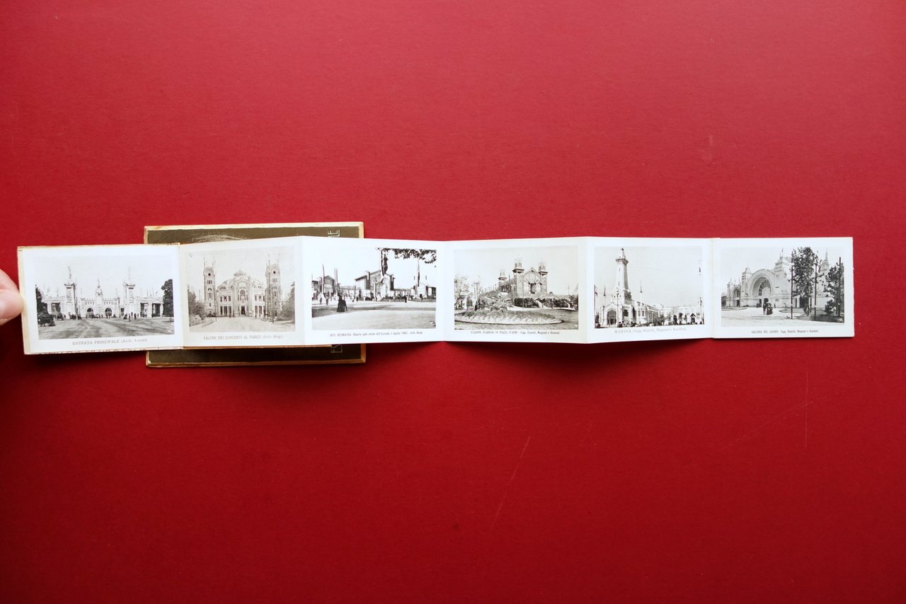 Cartolina, Esposizione Internazionale Milano - 1906 aprile - novembre inaugurazione del Sempione - cartolina a valigetta contenente 10 illustrazioni fotografiche in bianco e nero di altrettante vedute dell'Esposizione Officine Grafiche Pilade Rocco & C., Milano, s. d. ma 1906; bella cartolina originale ill. a colori; alla parte centrale apertura a valigetta con 10 vedute in b/n dell'esposizione (vedi foto). Non viaggiata. Cm 14,5x9. Condizioni di conservazione Esemplare in buone condizioni con qualche minuscolo difetto ai margini e agli angoli, un minuscolo strappetto alla parte inferiore. Per maggiori dettagli vedi foto. Originale. Per maggiori dettagli vedi foto. SC03.D17116 N