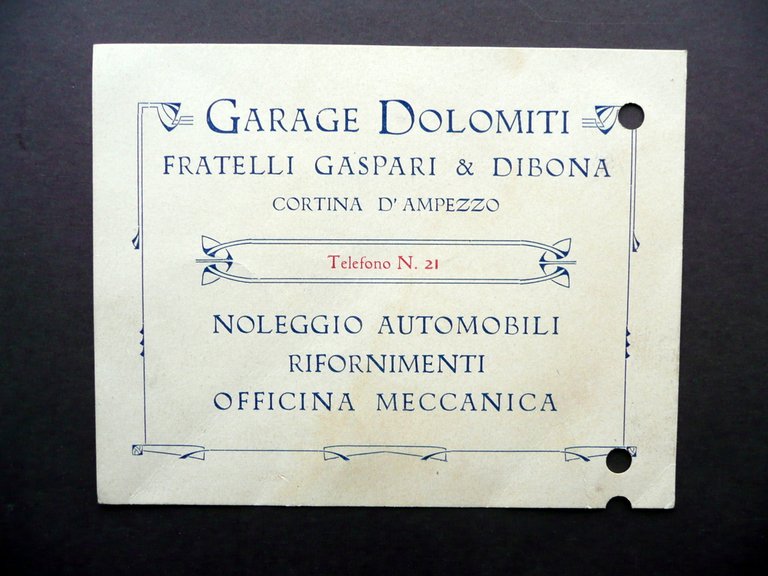 Cartoncino Garage Dolomiti Fratelli Gaspari Dibona Cortina d'Ampezzo Primo '900
