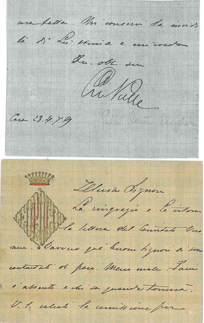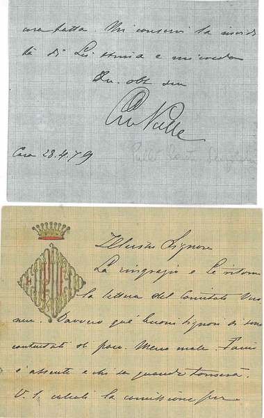 <p>11,5x9 cm; ". La ringrazio e Le ritorno la lettera del comitato veronese. Davvero que' buoni signori si accontentano di poco. Meno male."</p>