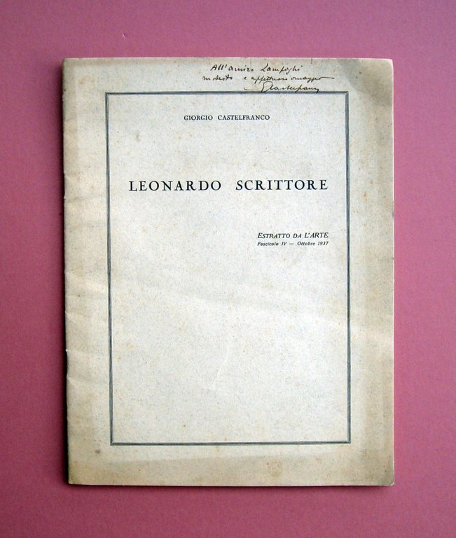 Castelfranco Giorgio Leonardo Scrittore fascicolo IV L'Arte Ottobre 1937 dedica