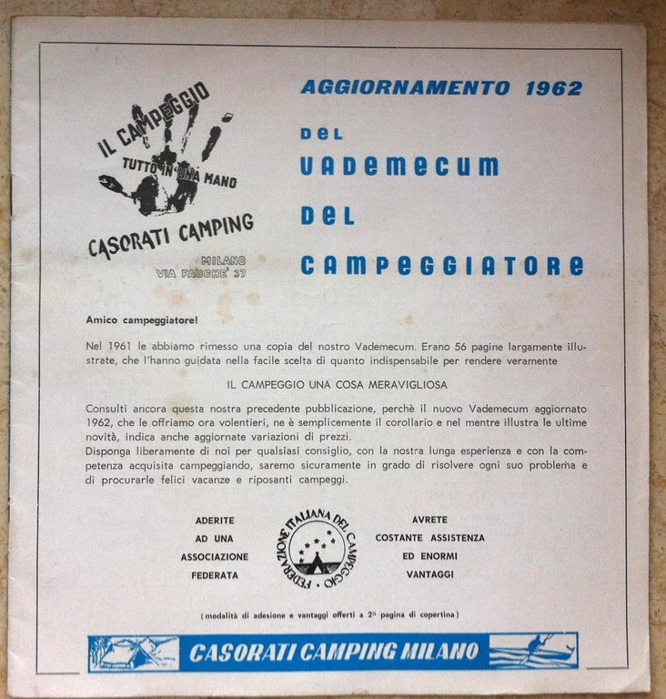 CATALOGO ARTICOLI PER CAMPEGGIO-VADEMECUM DEL CAMPEGGIATORE 1962-L2811