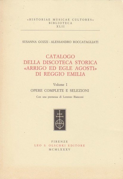 Catalogo della discoteca storica Arrigo ed Egle Agosti di Reggio Emilia Volume I Opere complete e selezioni