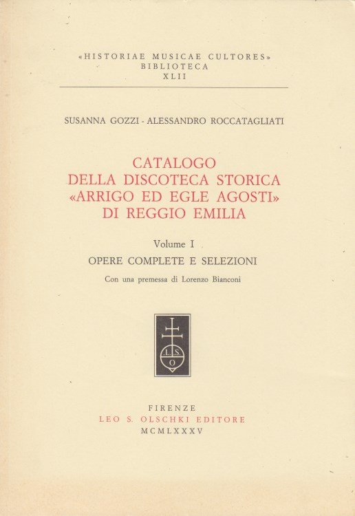 In-8 (Cm 24 x 17), pp. XXII-103, brossura editoriale. Collana Historiae Musicae Cultores Biblioteca, XLII. Esemplare a fogli chiusi. OTTIMO