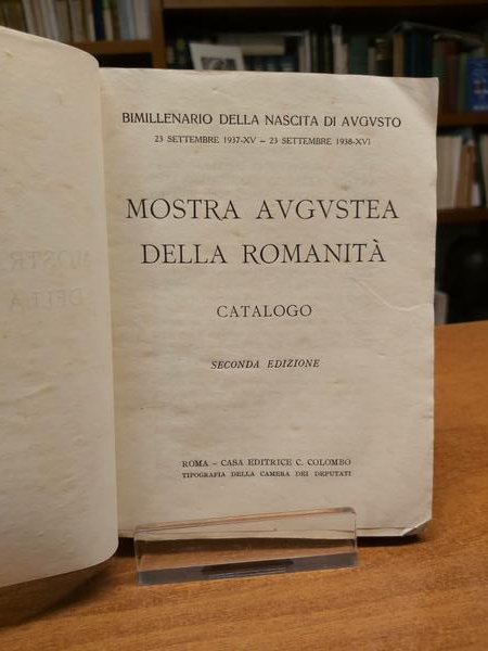 in-16, pp. XXVIII, 766, bross. edit. Con 160 tavv. f. t. raff. le opere esposte alla Mostra. Catalogo della Mostra inaugurata da Benito Mussolini nel 1937, principale manifestazione del bimillenario della nascita di Augusto: furono esposte opere di scultura e pittura, ricostruzioni di opere militari e macchine di guerra, opere di ingegneria civile, di numismatica, di artigianato, tavole epigrafiche, etc.