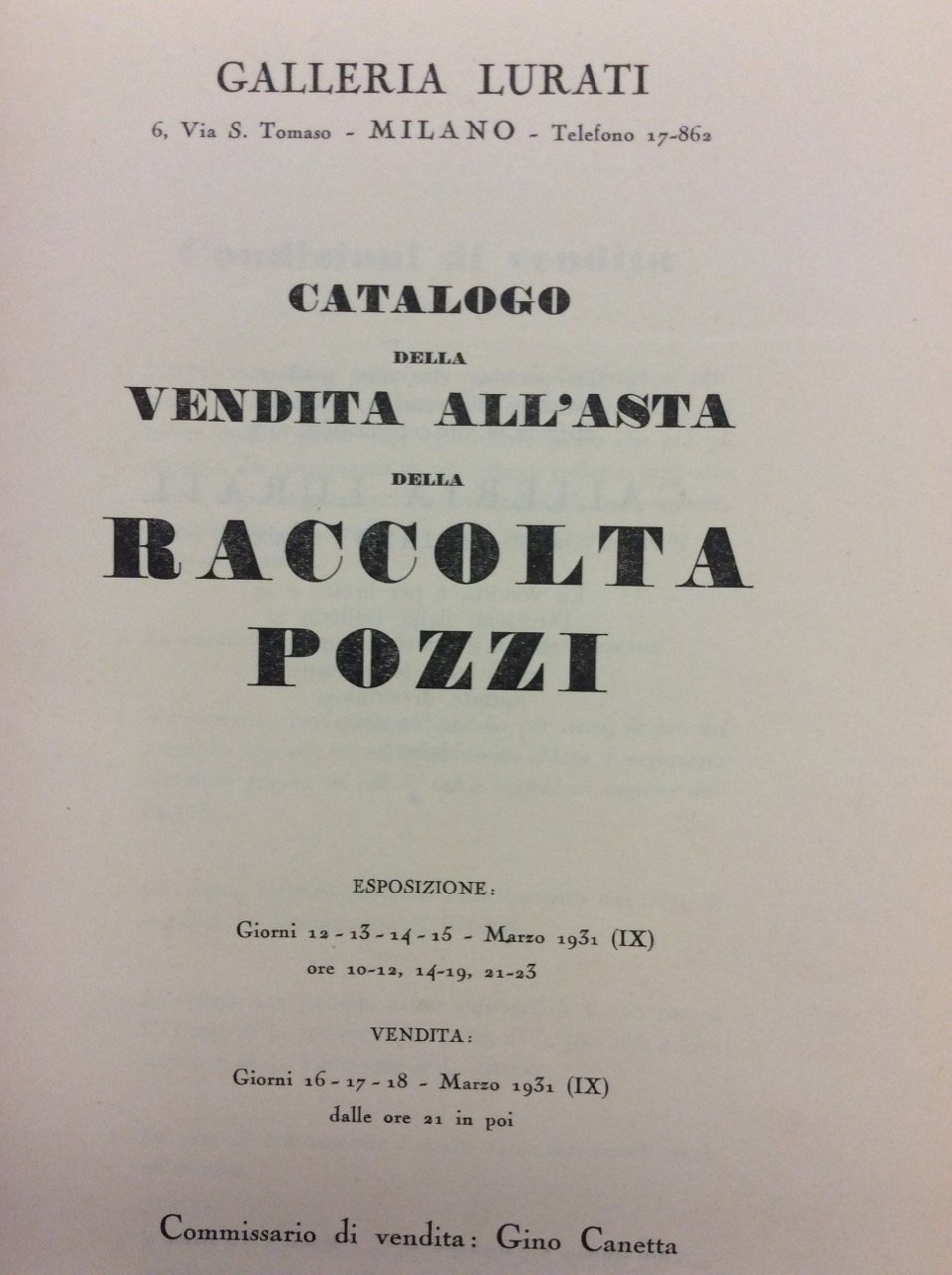 CATALOGO DELLA VENDITA ALL'ASTA DELLA RACCOLTA POZZI. - Milano, Galleria Lurati, marzo 1931.