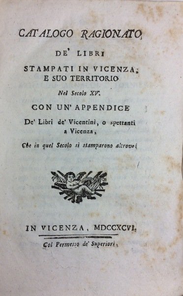 CATALOGO RAGIONATO DE' LIBRI STAMPATI IN VICENZA, E SUO TERRITORIO NEL SECOLO XV.