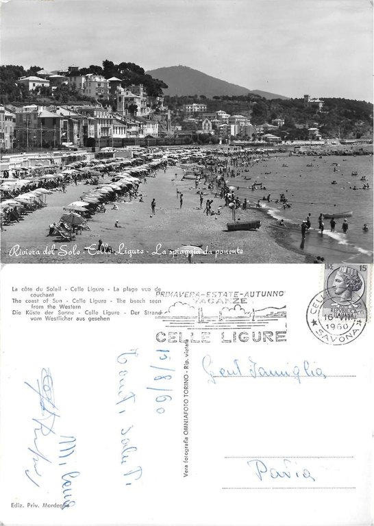 Celle Ligure. Spiaggia da ponente. Viaggiata 1960