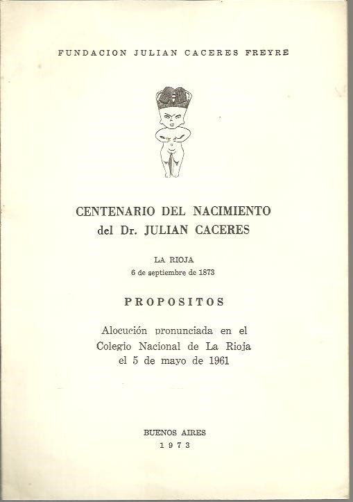 CENTENARIO DEL NACIMIENTO DEL DR. JULIAN CACERES. PROPOSITOS. ALOCUCION PRONUNCIADA EN EL COLEGIO NACIONAL DE LA RIOJA EL 5 DE MAYO DE 1961.