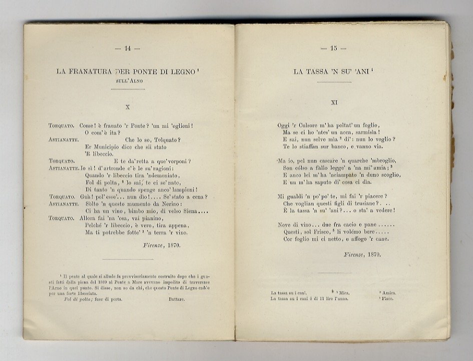 Firenze, Stabilimento di G. Pellas, 1872, in-16, br. editoriale (ma dorso e copertina posteriore posticci e con difetti marginali, piccola mancanza marginale alla copertina anteriore), pp. XII, 107, [1]. Prima edizione, rara.