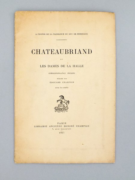 Chateaubriand et les dames de la halle. Correspondance inédite publiée par Edouard Champion, avec fac-similés ( A propos de la naissance du Duc de Bordeaux )