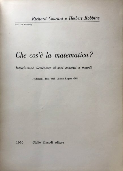 Titolo originale: What is Mathematics? An Elementary Approach to Ideas and Methods