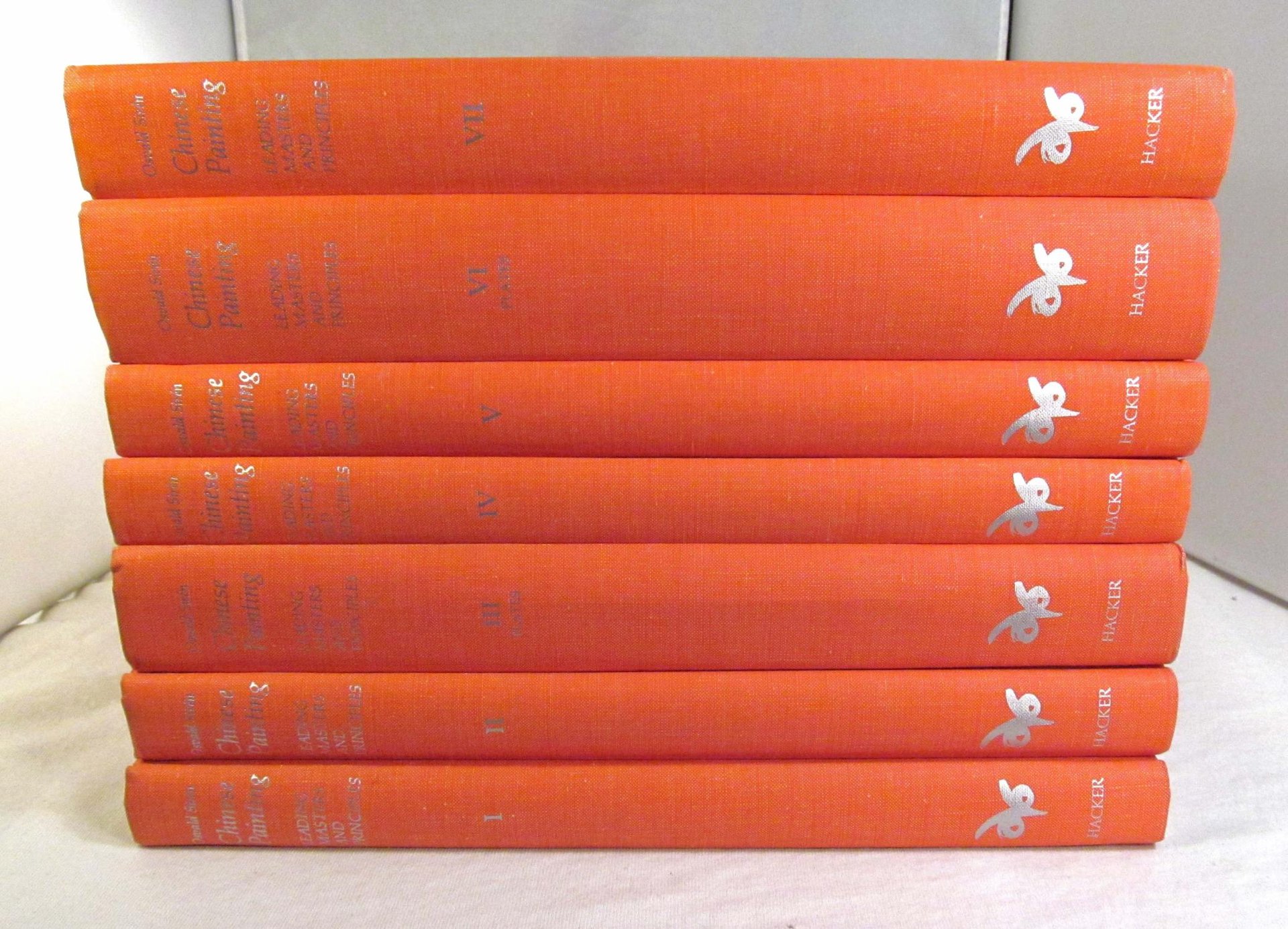 Orange cloth, very good, 7 vol set, 2 vols. plates, 5 volumes of illustrations and text, about 1700p. text, over 900 plates & ills. Exact reprint edition, bright as new copy,. bibliography, annotated list of paintings and reproductions by Chinese artists, index to Chinese, Japanese and western na-mes and terms. I: The First Millennium, Early Chinese Painting: xi+(1)+235 pages, full-color frontispiece; II: The First Millennium, The Sung Period: vi+189+95 pages, full-color frontispiece; III: The First Millennium, Plates: xviii+(1) pages, 388 b/w plates; IV: The Later Centuries, The Yuan and Early Ming Masters: x+240 pages, full-color frontispiece; V: The Later Centuries, The Later Ming and Leading Ch'ing Masters: vi+280 pages, full-color frontispiece; VI: The Later Centuries, Plates: xx+(2) pages, 464 b/w plates; VII: The Later Centuries, Annotated Lists of Paintings and Reproductions of Paintings by Chinese Artists: x+99- 466 pages. weigh about 10 kilos, so extra postage for international customers will be required.