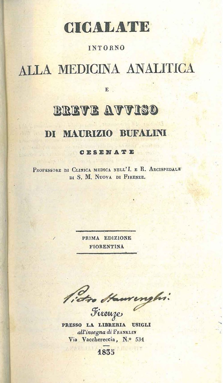 19 cm, ril. coeva in mezza pelle, tit. e fregi in oro al dorso, piatti marmorizzati, tagli colorati; p. 144, firmetta al frontespizio
