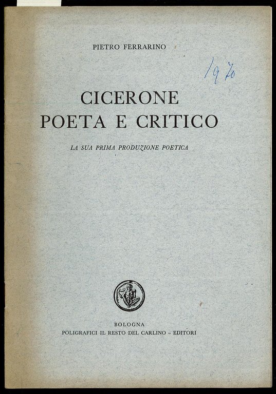 Cicerone Poeta e Critico – La sua prima produzione poetica