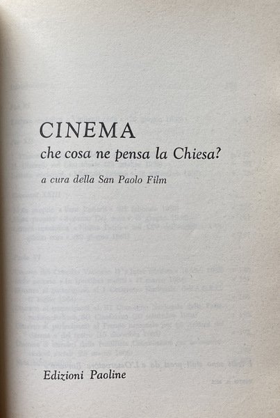 CINEMA CHE COSA NE PENSA LA CHIESA? A CURA DELLA SAN PAOLO FILM | Libros antiguos y modernos | San Paolo Film