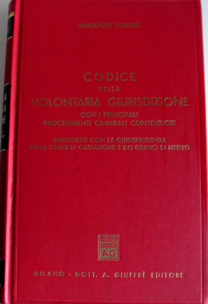 CODICE DELLA VOLONTARIA GIURISDIZIONE. CON I PRINCIPALI PROCEDIMENTI CAMERALI CONTENZIOSI ANNOTATO CON LA GIURISPRUDENZA DELLA CORTE DI CASSAZIONE E DEI GIUDICI DI MERITO | Libros antiguos y modernos | Vincenzo Scalese