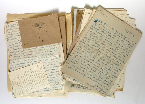 There never was a time when Frank Thiess was not controversial, the celebration publication in honour of the writer's 60th birthday states (Frank Thiess. Werk und Dichter, p. 30). Before the National Socialists seized power in 1933, the writer had enjoyed great success with his historical novels, and his literary importance was largely undisputed. His novel "Tsushima" (1937), translated as "The Voyage of Forgotten Men", was printed in several hundred thousand copies; Hemingway even included Thiess in his 1942 anthology "Men at War". After the War, Thiess coined the term "Inner Emigration" to describe the situation of artists who, as he did, remained in Germany during the Nazi years without personally agreeing with German politics of the time. Thiess argued that this attitude was superior to that of emigrants proper such as Thomas Mann, who supposedly had watched the destruction of Germany from "balcony seats". Although most of Thiess's works were seized by the Nazis and some were even burned publicly, his decision to remain in Germany and his bitter feud with Mann proved great obstacles when he tried to regain his old position in German literature after the War. - The present partial Nachlass, from the estate of his second wife, Yvonne Thiess, sheds light on his role during the last years of Nazi Germany and the postwar years until 1965. In these roughly 500 letters and postcards to his wife, 22 years his junior, he reflects extensively upon his life and work. While he has apparently resigned himself during the War years to being unable to provide for his family, he is baffled by the problems he encounters after the War, complaining of unfair treatment, feuds with other writers, and the difficulties in joining the literary scene of postwar Germany. - Detailed list available upon request. - Frank Thiess. Werk und Dichter. Ed. by R. Italiaander (Hamburg, 1950). Cf. E. Hemingway, Men at War: The Best War Stories of all Times (New York, 1942). Y. Wolf, Frank Thiess und der Nationalsozialismus. Ein konservativer Revolutionär als Dissident (Tübingen, 2003).