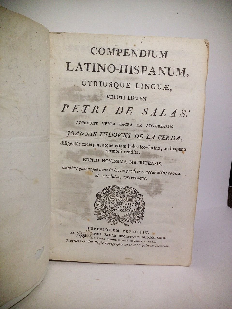 Compendium latino-hispanum, utrusque linguae / Veluti lumen Petri de Salas: Accedunt verba sacra ex adversariis Joannis Ludovici de la Cerda, diligentèr excerpta, atque etiam hebraico-latino, ac hispano sermoni reddita. Editio novissima Matritensis, omnibus quae usque nunc in lucem prodire, accuratiùs revisa et emendata, correctaque