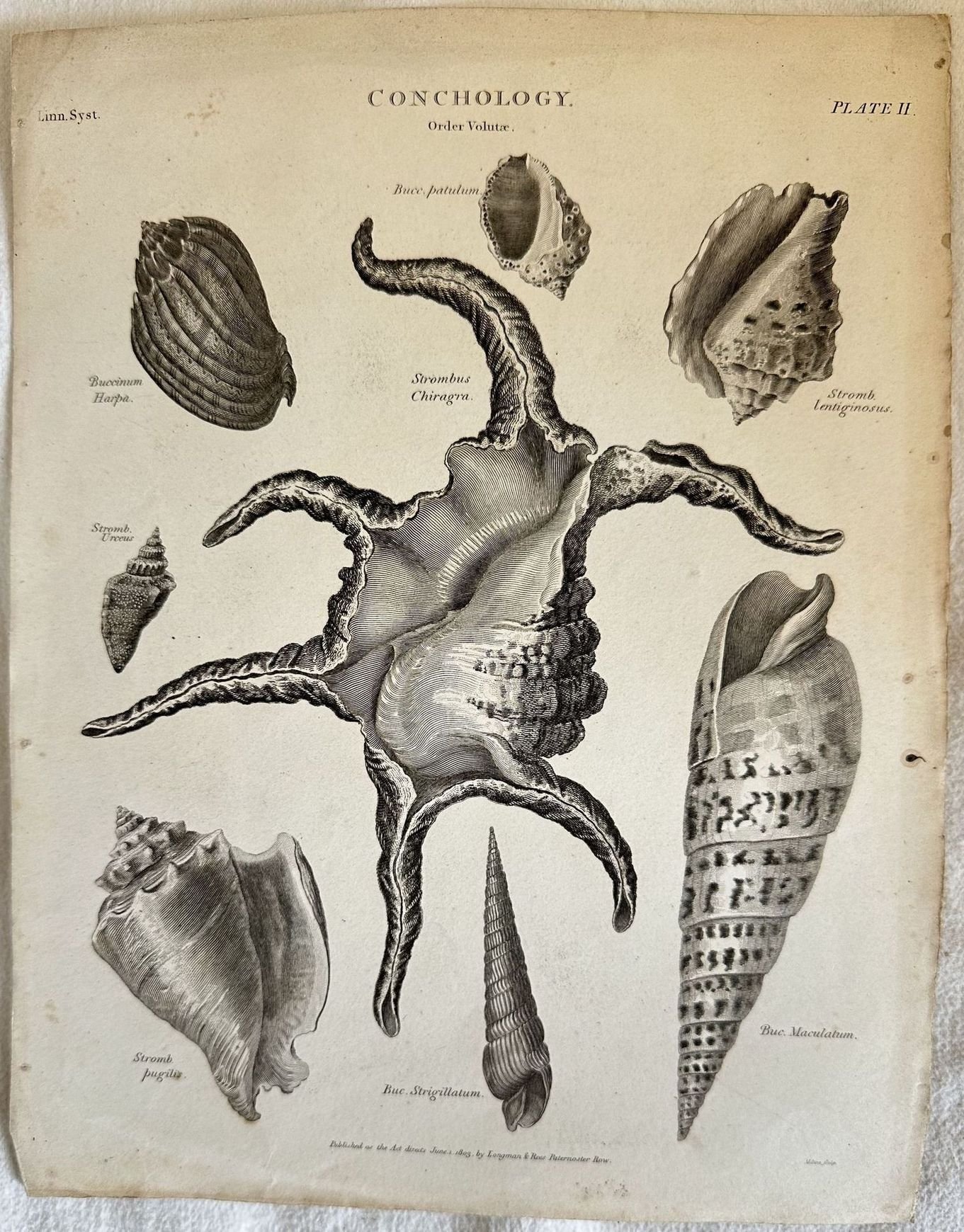 CONCHOLOGY Buccinum harpa - Bucc. patulum - Stromb. lentiginosus - Strombus chiragra - Stromb. Urceus - Strombus Chiragra - Buc. Maculatum - Buc. Strigillatum - Stromb. pugilis PUBLISHED AS THE ACT DIRECTS JUNE 1 1803 BY LONGMAN AND REES