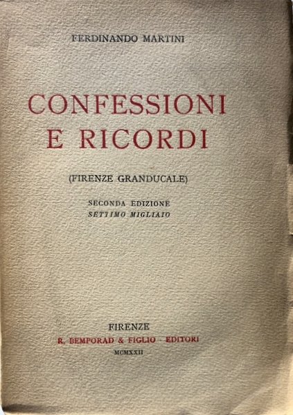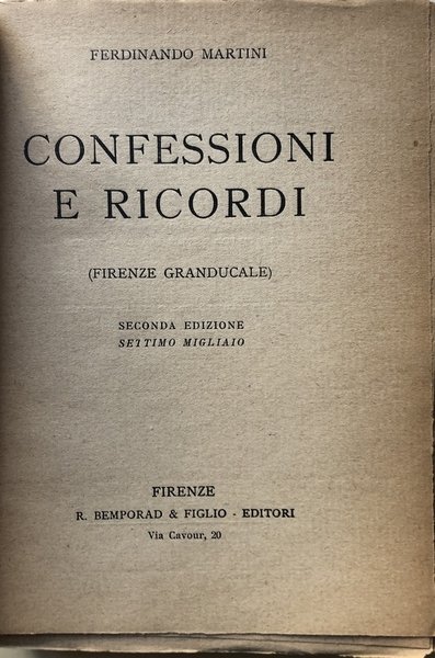 CONFESSIONI E RICORDI (FIRENZE GRANDUCALE) | Libros antiguos y modernos | Ferdinando Martini