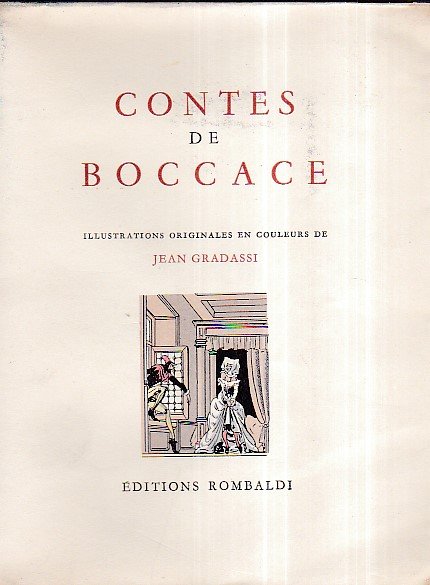 In-8°, pp. 187, (3), brossura editoriale incamiciata con vignetta a colori al piatto. Tavole f.t. incise su rame di Jean Gradassi, di cui una all'antiporta, tirate a mano sulle presse di Delahaye e rialzate a pochoir da Edmond Vairel. Ottimo esemplare entro velina. Esemplare n. 2230 'sur vélin crème des Papeteries de Rives' (tiratura complessiva non specificata). Florilegio di novelle boccacciane elegantemente illustrate. Monod, 1622.