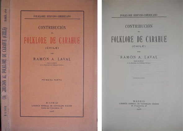 Madrid, Imprenta Clásica Española, 1916 ["Folklore Hispano-Americano"]. 4to. mayor; 179 pp., con transcripciónes musicales entre el texto. Cubiertas originales.