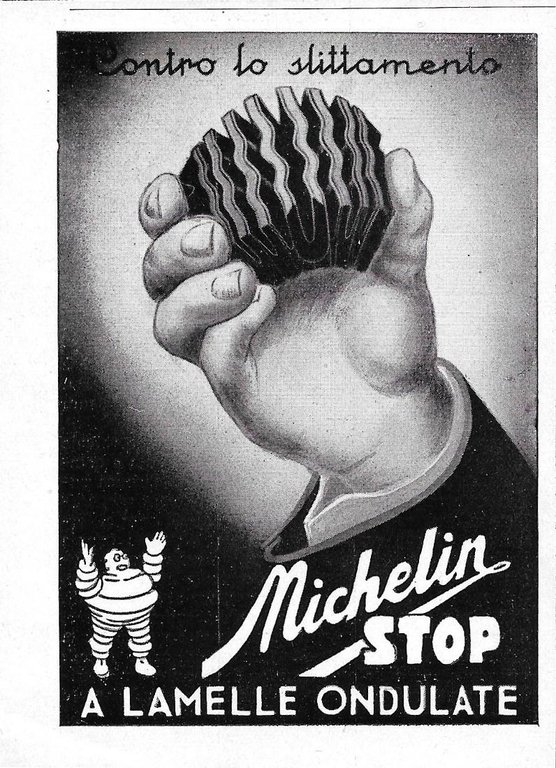 Contro lo slittamento Michelin Stop a lamelle andulate. Advertising 1942