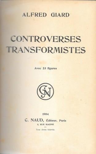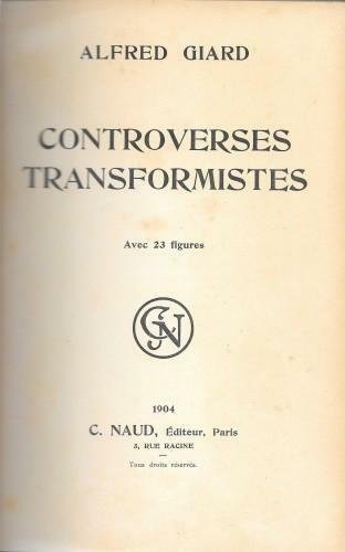 in 8°, pp. VIII, 178, 1; m/pelle coeva, ds. a nervi con tit. in oro, carta forte. Raccolta di articoli, rivisti e corretti, pubblicati in varie riviste scientifiche a proposito del trasformismo penetrato nell'insegnamento superiore francese, con 23 ill. b/n n.t.; lievi abrasioni al ds. 511/28
