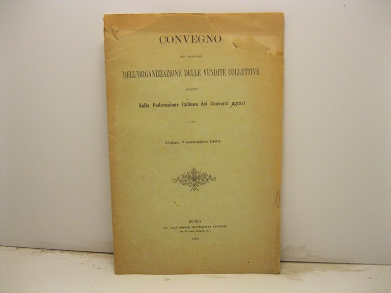Convegno per trattare dell'organizzazione delle vendite collettive indetto dalla Federazione italiana dei Consorzi agrari, Udine, 7 settembre 1903