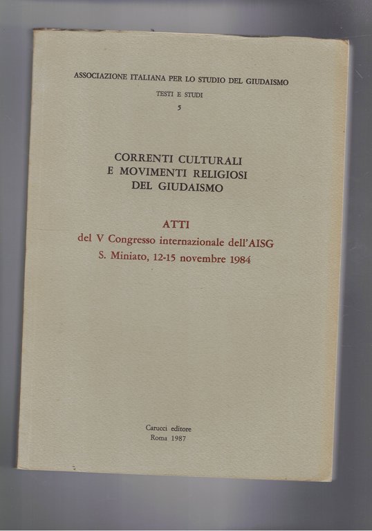Correnti culturali e movimenti religiosi del giudaismo. Atti del V congresso internazionale dell'Aisg s. Miniato 12-15 nov. 1984.