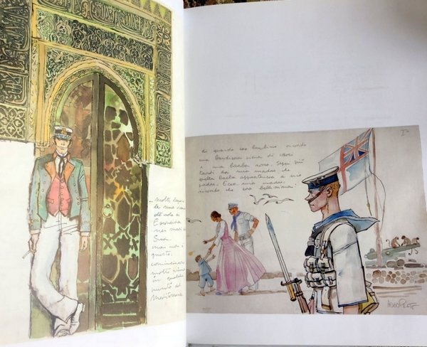 This series reprints in chronological order all the Corto Maltese stories. Includes several introductory essays on Corto, preparatory watercolor sketches, a map illustrating Corto's trips and adventures and three stories in color. Anti-theft sticker to rear pastedown endpaper.