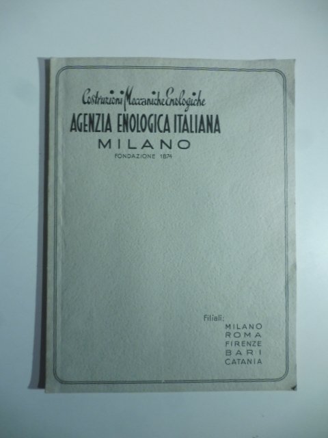 Costruzioni meccaniche enologiche. Agenzia enologica italiana, Milano. Catalogo
