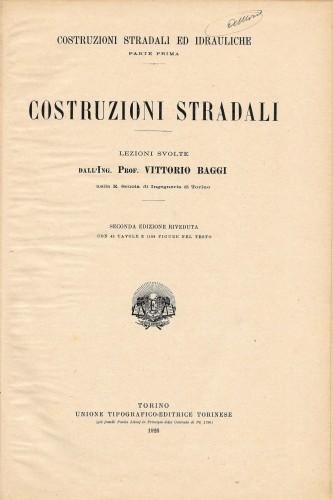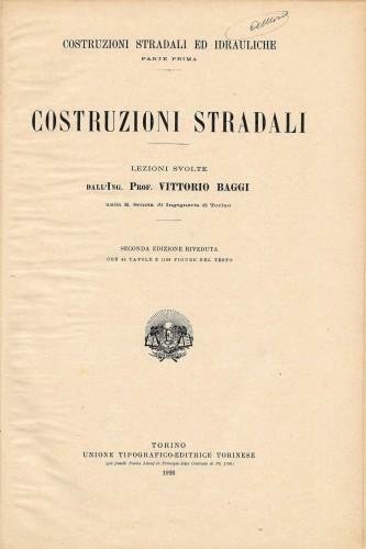 in 4°, pp. 607, leg. coeva m/tela nera con tit. oro al ds., tagli spruzz. Collana: Costruzioni stradali ed idrauliche. Ottime lezioni svolte al R. Politecnico di Torino, con centinaia di disegni, schemi e tabelle n.t. e 45 tavv. ripiegate f.t. di cui 3 a colori. In ottimo stato. 043/23