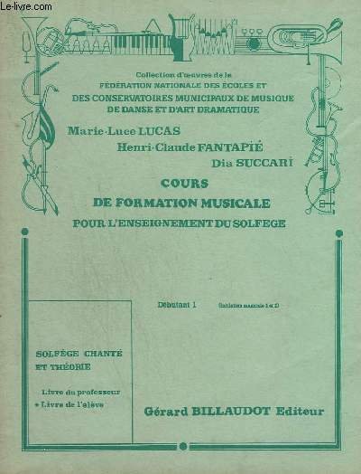 COURS DE FORMATION MUSICALE POUR L'ENSEIGNEMENT DU SOLFEGE - DEBUTANT 1 - LIVRE DE L'ELEVE.