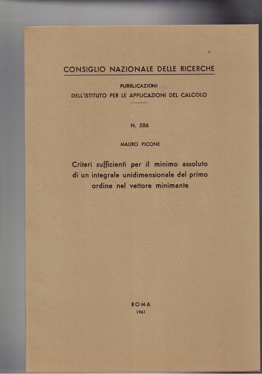 Criteri sufficienti per il minimo assoluto di un integrale unidimenssionale del primo ordine nel vettore minimante. Estratto.