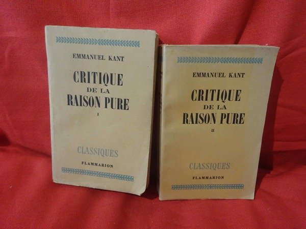 Paris, Flammarion, 1950; in-12, 356 + 380 pp., broché, quelques annotations au crayon de papier. Les 12 volumes. Emmanuel Kant est un philosophe Allemand originaire de Prusse. Né en 1724, il meurt en 1804. Grand penseur de l'Aufklarung il a exercé une grande influence sur l'idéalisme allemand. Il est le fondateur de l'Idéalisme Transcendantal. Ces trois ouvrages principaux dans son oeuvre commence par critique dans le titre. Traduction de J. Barni, revue et corrigée par P. Archambault. Bon état.