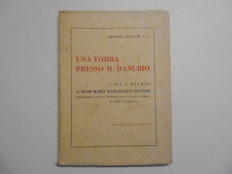 E. Csavossy S. J., Una Tomba Presso Il Danubio Vita E Diario di Suor Maria Margherita Bogner Monastero della Visitazione, Bologna, 1938; cm 17,5x12, pp. 115; ill. f. t. in b. n. Cartoncino edit. bianco. Condizioni di conservazione Esemplare in ottime condizioni di conservazione. Bruniture alla coperta. Un timbro dell'ex biblioteca regolarmente annullato alla prima bianca. SETT123.L22572G
