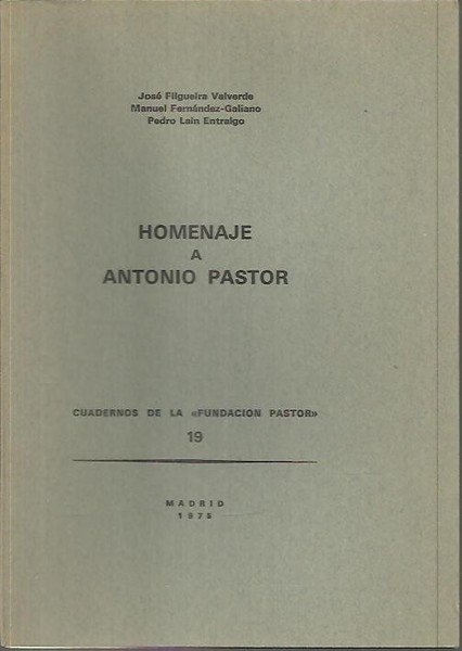 CUADERNOS DE LA FUNDACION PASTOR. N. 19. HOMENAJE A ANTONIO PASTOR.