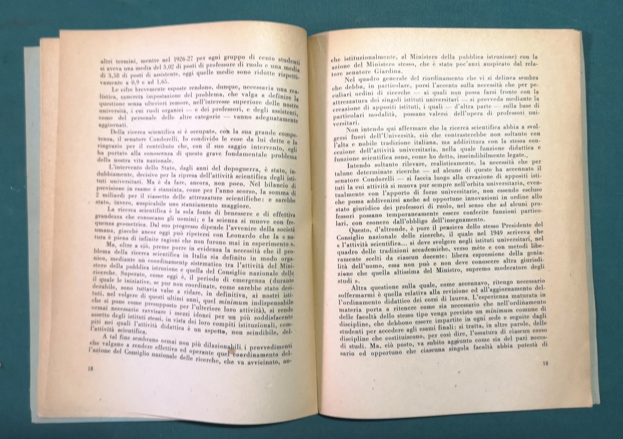 >opuscolo in-8, pp. 32, broch. edit.. Discorso pronunciato al Senato della Repubblica nella seduta del 7 aprile 1954 da Gaetano Martino, ministro degli Esteri dal 1954 al 1957. Rarissimo. Perfetto esemplare (usuale ingiallimento della carta).