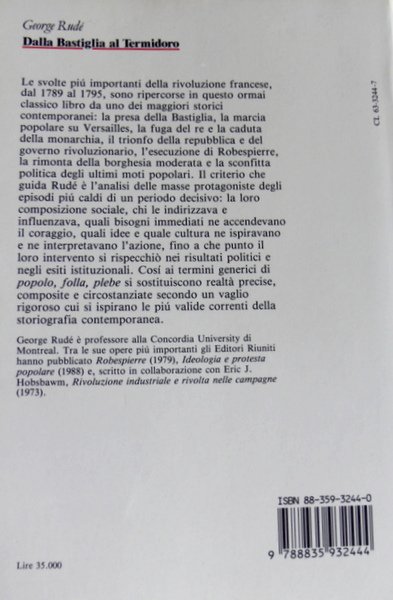 Soggetti: Rivoluzione francese, Storiografia, Storia della Francia, Sociale, Masse rivoluzionarie, Storia d'Europa, Saggi storici, Periodo rivoluzionario, 1789, Montagnardi, Girondini, Giacobini, Termidoro, Bastiglia, Campo di Marte, Germinale, Pratile, Vendemmiaio, 1795, Filosofia, Versailles, Bastiglia, Marcia, Rivolte, Contadini, Folle, Movimenti politici, Giustizia sociale, Robespierre, Terzo Stato, Hardy, Marx, Hegel, Fichte, Illuminismo, Tuetey, Mathiez, Jaurès, Funch-Brentano, Marat, Danton, Saint-Just, Luigi XIV, Maria Antonietta, Rivoluzionari, Parigi, Napoleone, Ghigliottina, Libertà, Uguaglianza, Fraternità, Guerre, Interpetrations of the French Revolution, A Study of Popular Disturbances in France, England, 1730-1848, July Revolution, Sans-culottes, Bastille, Bourgeois, Bourgeoisie, Butte des Moulins, Capital, Champ de Mars, Riots, Paris Commune, Faubourg Saint-Antoine, Libri Vintage, Fuori catalogo, Ideologie, Ideology, El rostro de la multitud: estudios sobre revolución, La Multitud en la Historia, Marxismo, Materialismo storico, Dialettica, Sommosse popolari, Collected Essays, Réveillon, Terzo Stato, Stati generali, Histoire de la Révolution de France, Michel Vovelle, Storia Moderna, Historical materialism, Dialectics, Historiography, Out of Print Books