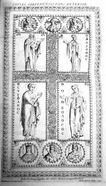In-4 p. (mm. 297x225), cartoncino muto coevo (pesanti aloni), pp. 35, con una bella vignetta calcografica al frontespizio, una testata, 2 grandi capilettera decorati, 2 figure nel testo (pure inc. in rame) e con 2 tavole fuori testo, ripieg., che illustrano la parte anteriore e posteriore della Croce posta nella Chiesa de' Frati di S. Francesco a Cortona (una di quelle Croci alla Greca adorna di figure di Santi e con iscrizioni), incise da R. Brunet e F. Bailleul su disegni di F. Fabbrucci. "Edizione originale".Cfr. Moreni,II, p. 442 E' corredata questa dissertazione di altri monumenti ecclesiastici antichi, tutti inc. in rame - Cicognara,3357.Prime 3 carte restaur. per fori di tarlo (perdita di alc. lettere di testo solo su 1), altriimenti esemplare con barbe ben conservato. .