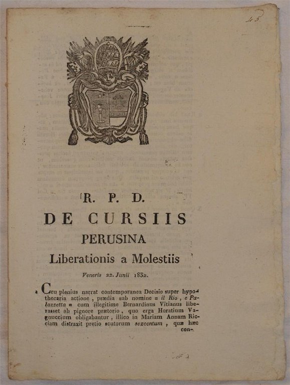 DE CURSIIS PERUSINA LIBERATIONIS A MOLESTIIS VENERIS 22 JUNII 1832