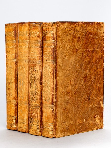 4 vol. in-8 reliure de l'époque pleine basane racinée marron, dos lisse orné en long, Jules Renouard et Cie, Paris, 1839, LXXXIII-519 pp. avec un grand tableau dépliant ; 2 ff., 588 pp. ; 2 ff., 612 pp. ; 2 ff., 620 pp. Envoi du fils de Joseph-Marie de Gérando, Gustave de Gérando, "A mon cher cousin de Lille de Gérando, au nom de mon père". Philosophe et l'un des précurseurs de l'anthropologie et l'observation participante, de Gérando fut aussi un philanthrope actif. Dans ce monumental traité il aborde des questions très diverses : il commence par une étude approfondie des causes de l'indigence (important travail statistique), les erreurs commises dans son traitement, le détail des sociétés de prévoyance, d'épargne et de secours, l'utilisation des indigents comme colons, l'émigration, l'assistance à domicile, les divers types d'établissements hospitaliers pour les pauvres, les détails des législations les concernant, etc. Etat satisfaisant (rel. fort. frottées, qq. mouill., bon état par ailleurs)
